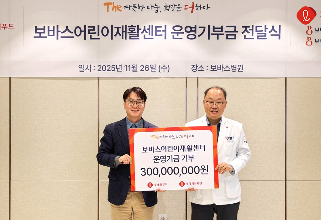 롯데의료재단에 1억 원을 기부하며 3년째 따뜻한 나눔을 실천했어요.